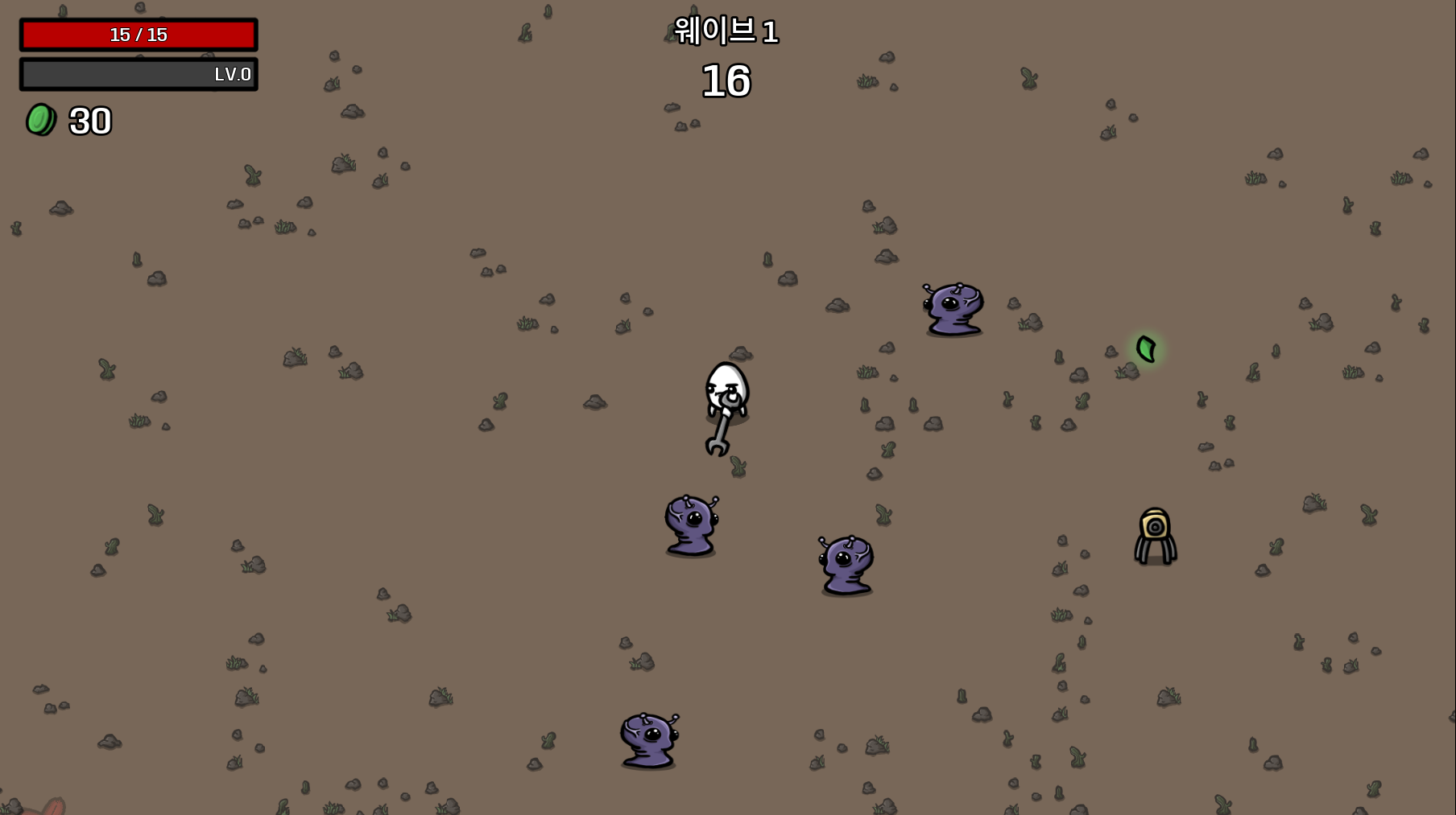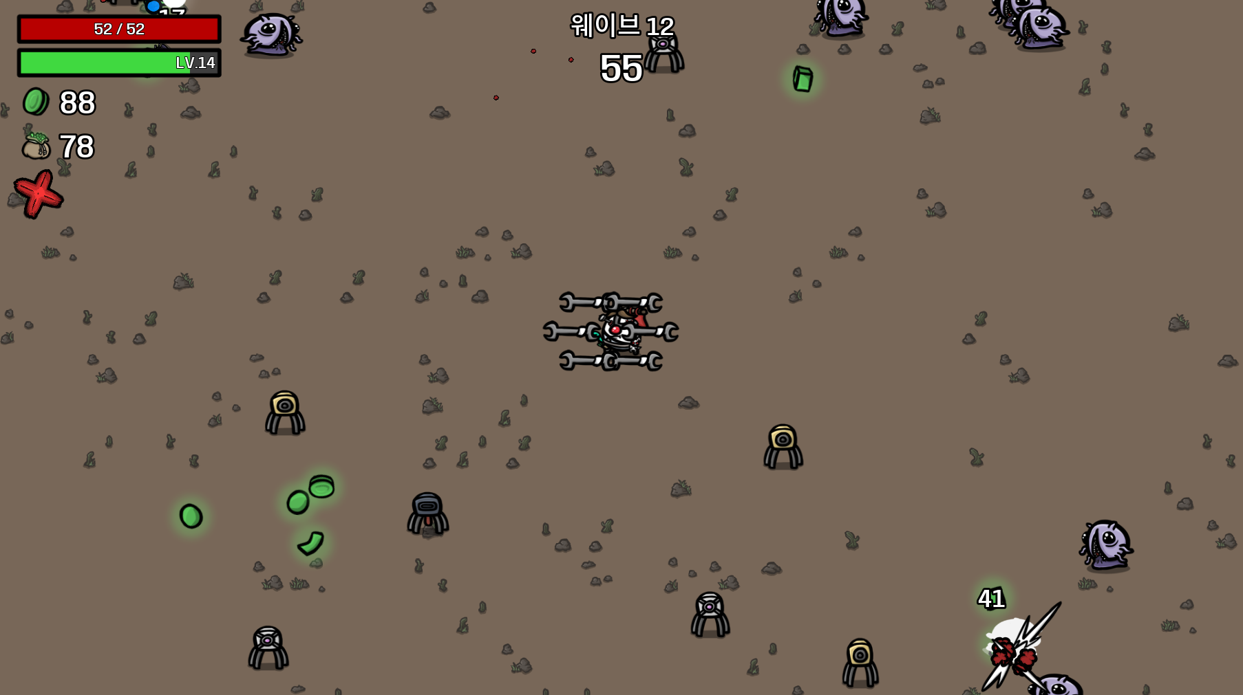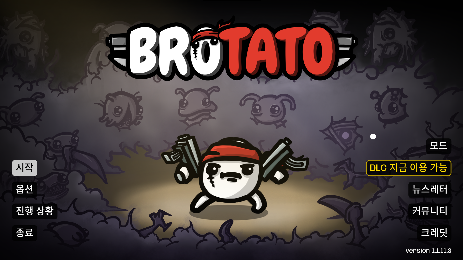 감자가 6개 무기를 동시에 휘두르며 외계인 물량을 버티는 웨이브형 로그라이트. 라운드 사이 상점에서 빌드를 키우고, 다양한 **생존자(캐릭터)**로 매 판 다른 조합을 즐깁니다. (대상: 입문자, 10·20대 남성 중심)
